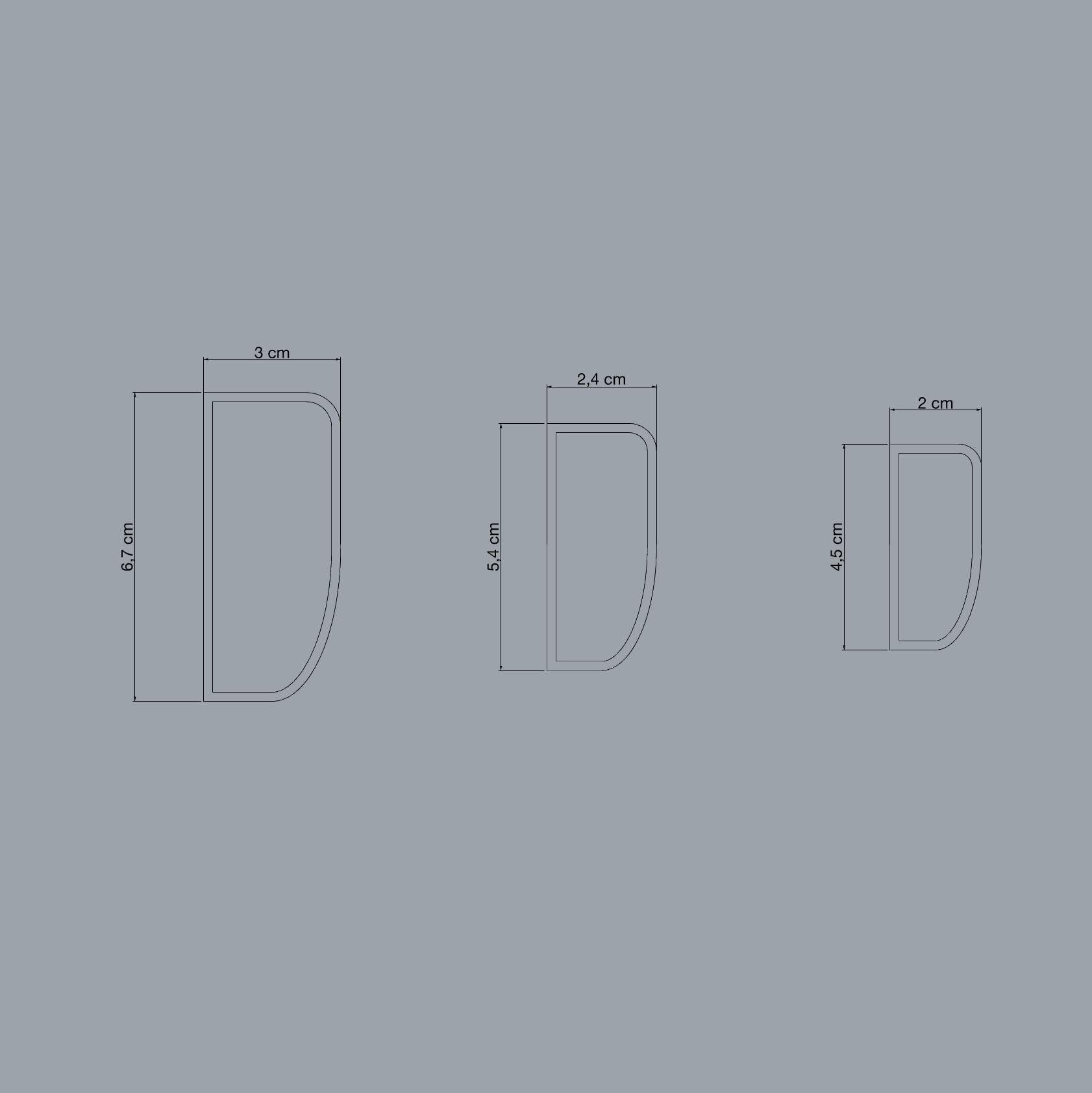 Incluye 3 unidades de un mismo diseño de Asas en 3 tamaños diferentes.